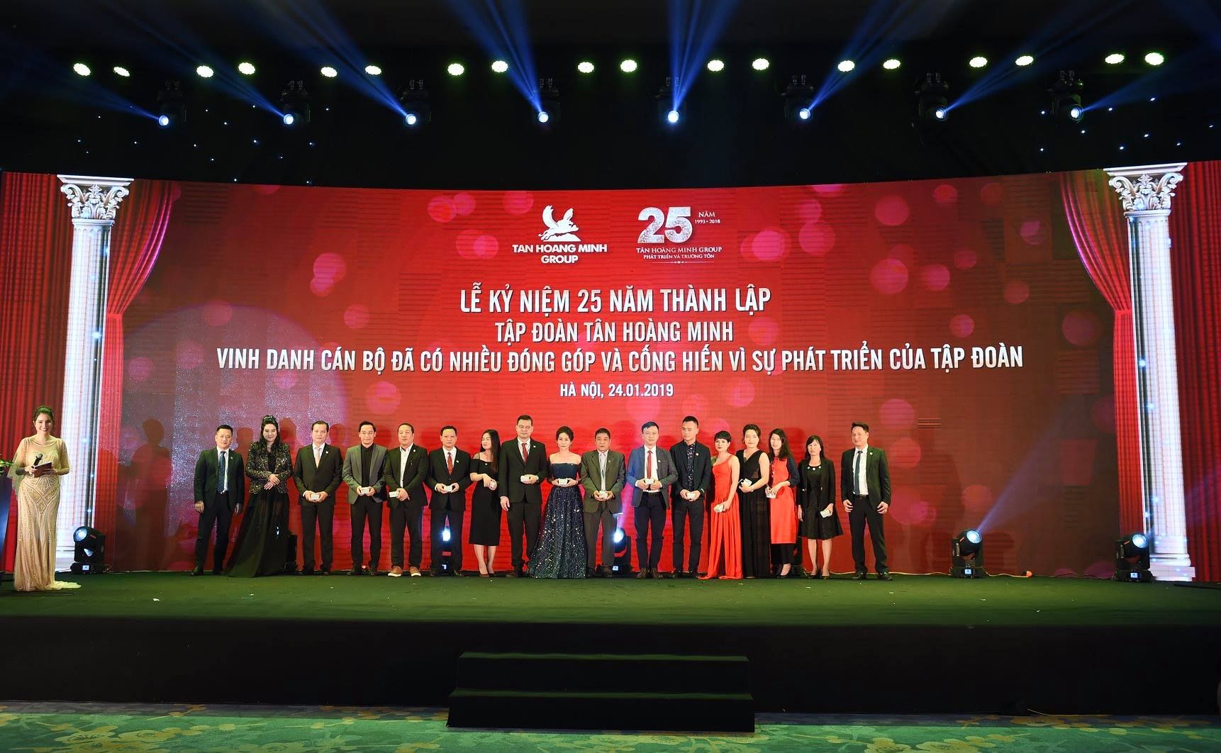 Tập đoàn Tân Hoàng Minh, bằng sự hội nhập và sáng tạo không ngừng, đã không ngừng thay đổi và thích ứng với thị trường để khẳng định vị thế của mình trong mọi lĩnh vực mà họ tham gia ngày nay. Đó chính là lý do lớn nhất khiến họ đã thành công chiếm được lòng tin của toàn thể cán bộ công nhân viên với niềm tin sắt đá vào “ TẬP ĐOÀN KHỔNG LỒ- TÂN HOÀNG MINH ”, vào sự phát triển trường tồn của mình. Ngày 24/01/2019, Tập đoàn đã kỷ niệm 25 năm thành lập đánh dấu một chặng đường không ngừng hoàn thiện tổ chức cũng như tận hưởng những thành quả mà mỗi con người Tân Hoàng Minh đã dày công vun đắp suốt 25 năm qua. Sự kiện cũng là cơ hội tốt để Ban lãnh đạo tập đoàn tri ân những cá nhân đã có những đóng góp to lớn cho sự phát triển của Tân Hoàng Minh trong suốt những năm qua.